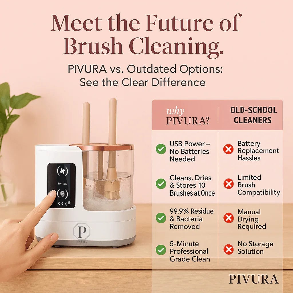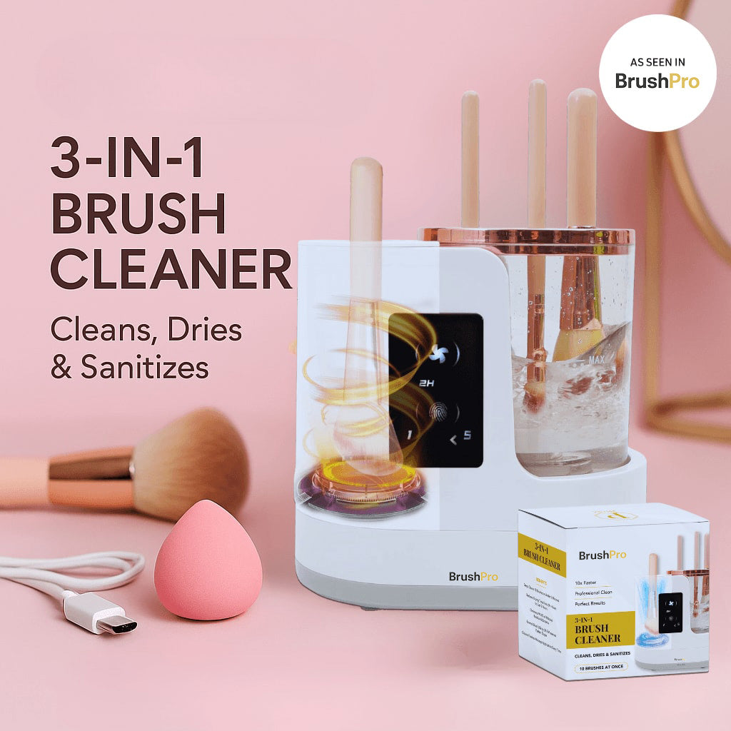 Experience spotless, dry, and sanitized brushes effortlessly with BrushPro's cutting-edge 3-in-1 technology. Eliminate microbes and enhance your makeup application!